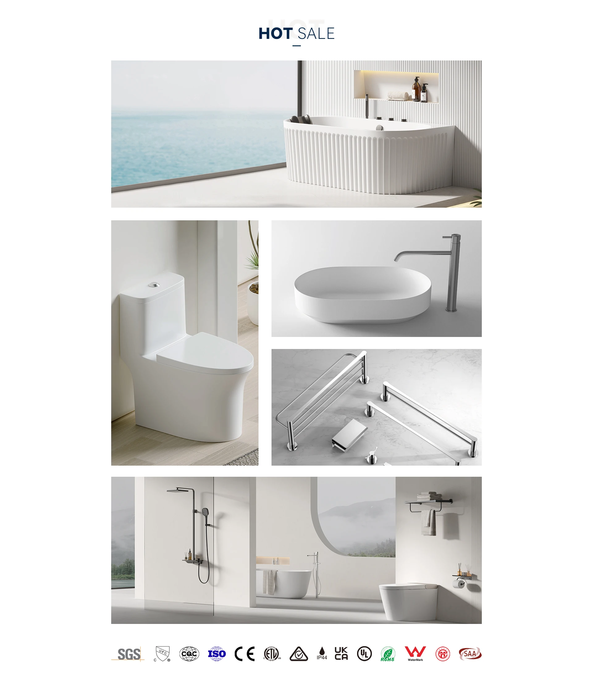 Productos principales:Bañera, inodoro, juego de accesorios de baño, espejo de baño, barra de agarre
